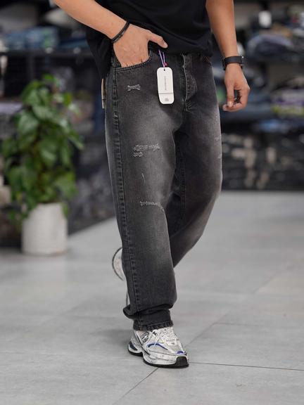 نیم بگ جین vip مردانه ذغالی خراش کد886